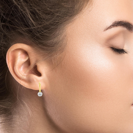 Класически обеци с диамант 0.15 ct и жълто злато 14к – Английско закопчаване, Код K10036