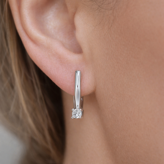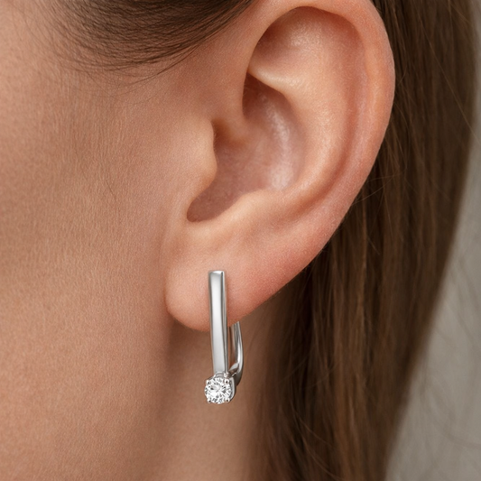 Класически обеци с диамант 0.12 ct и бяло злато 14к – Английско закопчаване, Код K10035B