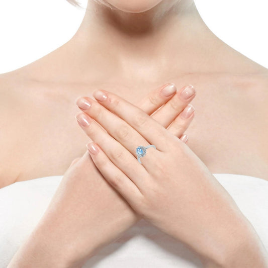 Пръстен от бяло злато 18К с аквамарин 0.43 ct и диаманти – специална оферта с включена луксозна кутия