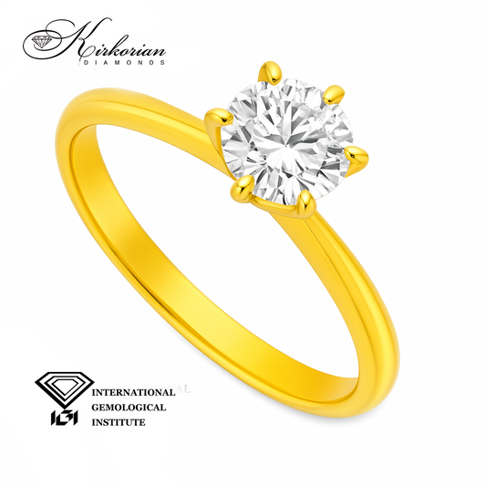 Годежен пръстен от жълто злато 14К с лабораторно създаден диамант 0.70 ct | Кръгла форма | Сертификат IGI | ТОП ЦЕНА