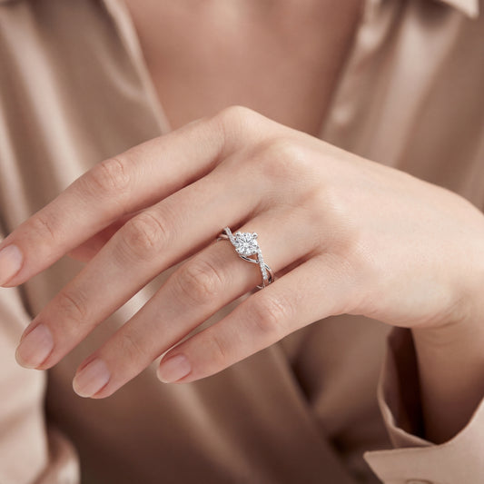Спести 30%НаличноУникален годежен пръстен от бяло злато 14k с диамант 0.80ct GIA – модел K650