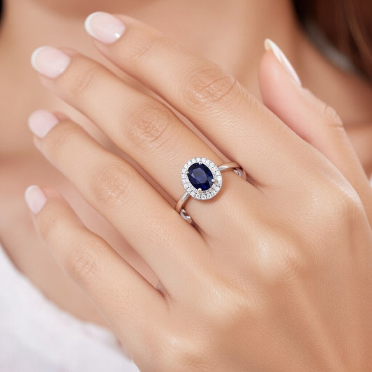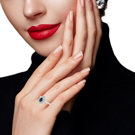 Спести 30%НаличноБял златен пръстен със сапфир и диаманти 18k – модел IT22