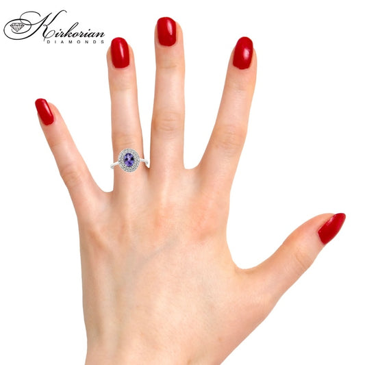 Годежен пръстен от бяло злато 18К с танзанит 1.13 ct и диаманти 0.46 ct – луксозна изработка Kirkorian Diamonds