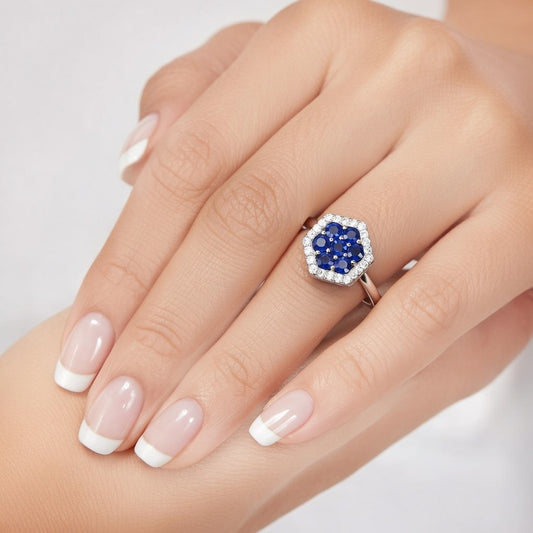 Пръстен със сапфири 0.728 ct и диаманти 0.17 ct от бяло злато 18К – модел RG058757