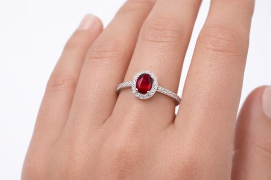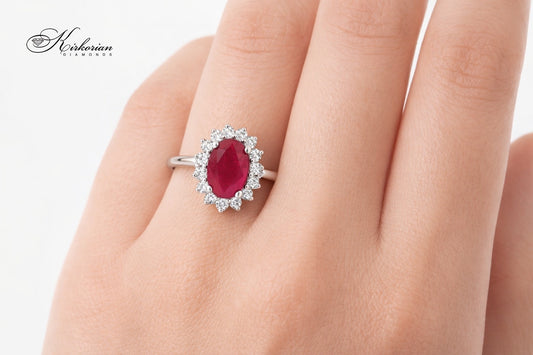 Пръстен с естествен рубин 0.93 ct и диаманти – бяло злато 14К | Кралски стил на достъпна цена