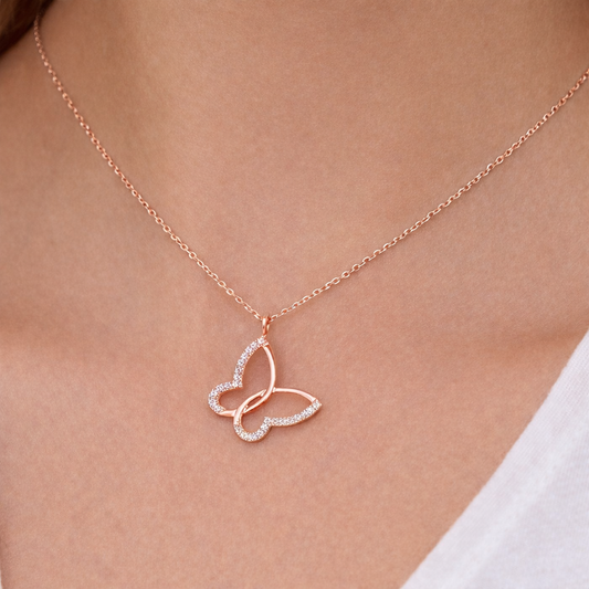 Колие пеперуда от розово злато 18К с диаманти 0.06 ct | Елегантен дизайн от Kirkorian Diamonds