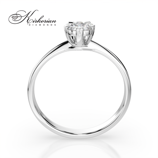 Годежен пръстен от бяло злато 18К с диаманти 0.09 ct в цветна форма | Код: RN58B | Сертификат KD
