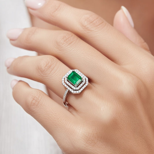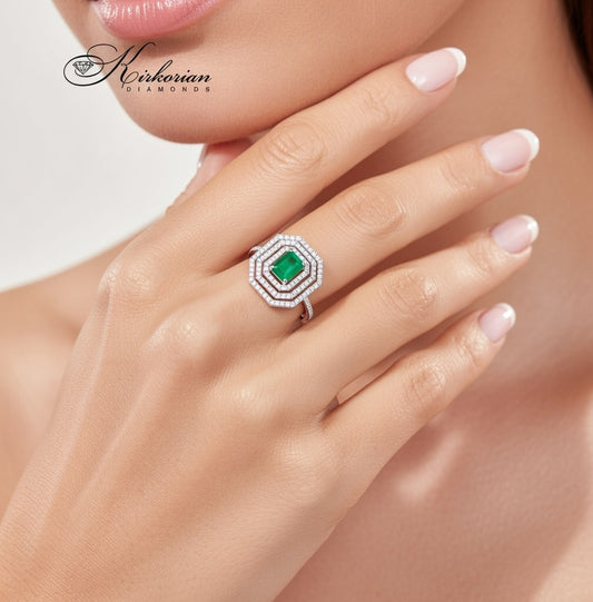 Пръстен от бяло злато 18K с изумруд 1.76ct и диаманти 0.34ct | Размер 54 | Сертификат