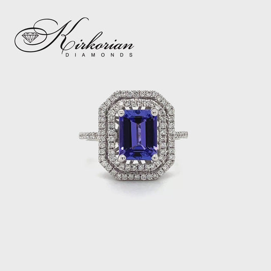 Годежен пръстен от бяло злато 18К с танзанит 1.13 ct и диаманти 0.46 ct – луксозна изработка Kirkorian Diamonds