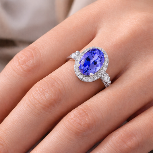 Годежен пръстен с танзанит 2.05ct и диаманти 0.72ct IGI бяло злато 18k – RT16