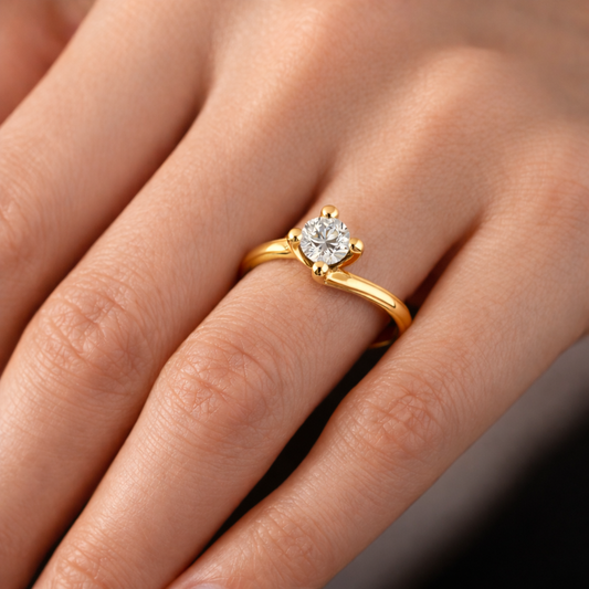 Изискан годежен пръстен от жълто злато 14k с диамант 0.50ct H VS1 IGI – модел K654B