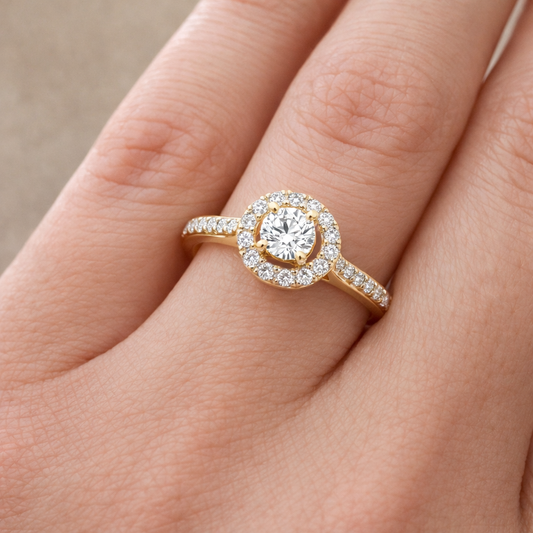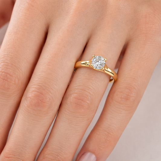 Спести 30%НаличноГодежен пръстен от жълто злато 14К с естествен диамант 0.80 ct G VS1 GIA