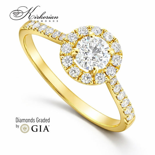 Спести 30%НаличноЛуксозен годежен пръстен от жълто злато 18k с диамант 0.66ct GIA | Код M109