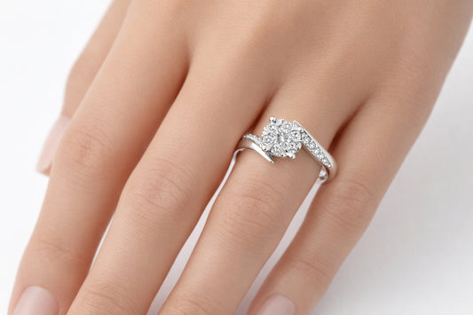Диамантен пръстен с цветен дизайн – 0.19 ct | Бяло злато 18К | Елегантност на изгодна цена