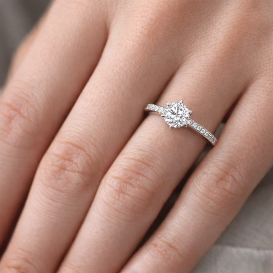 Спести 30%НаличноКласически годежен пръстен от бяло злато с диамант 0.50ct GIA – модел K631