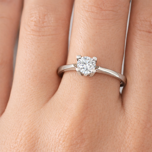 Годежен пръстен с диамант 0.90ct L/VVS2 IGI – 14k бяло злато с класическа коронка