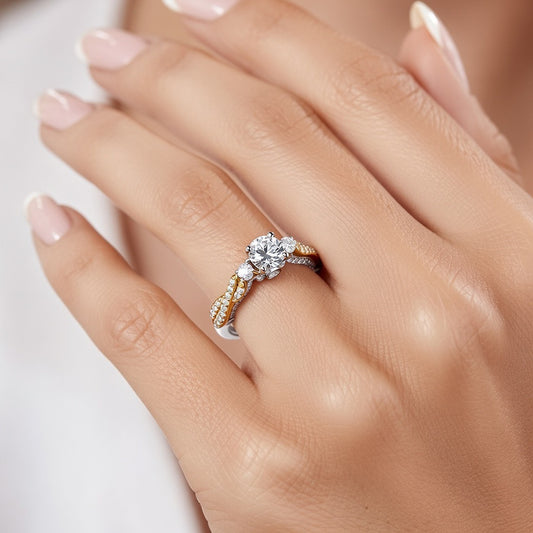 Годежен пръстен от бяло и жълто злато 18k с диаманти 1.44ct и GIA сертификат K628
