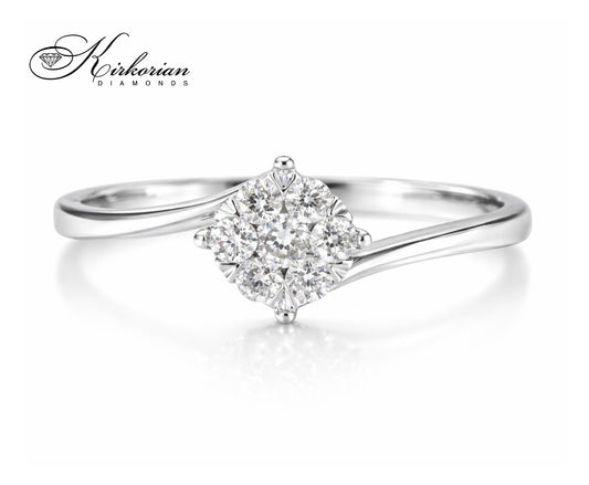 Годежен пръстен от бяло злато 18К с 7 естествени диаманта 0.14 ct – класически модел с луксозна опаковка