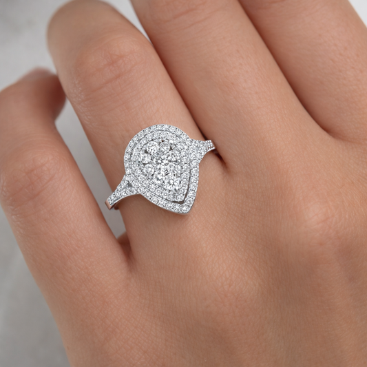 Годежен пръстен с диаманти 0.31 ct във форма капка – бяло злато 18К | Лукс на достъпна цена