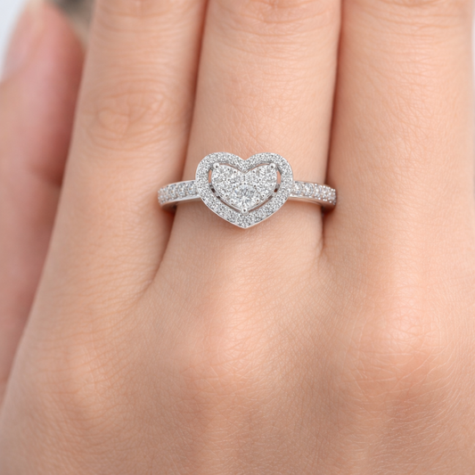 Спести 30%НаличноГодежен пръстен сърце с диаманти 0.34 ct от бяло злато 18К – модел RN228
