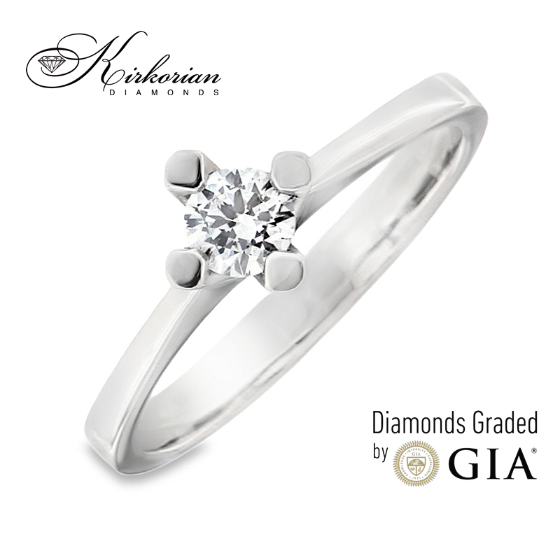Класически годежен пръстен бяло злато 14к. с диамант 0.30 карата GIA сертификат код:K586