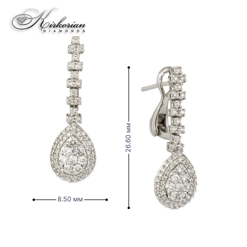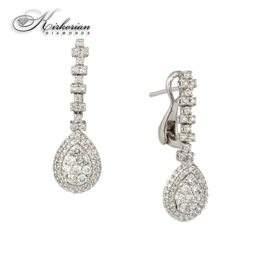 Елегантни висящи обеци от бяло злато 18К с диаманти 0.74 ct, изработени в изискан капков дизайн с многоредово диамантено обграждане. Моделът впечатлява с ярък блясък и модерна форма, подходящ за официални събития и стилни поводи. Отличен избор при търсене на луксозно бижу с високо качество и изгодна цена. Всички изделия се предлагат в луксозна подаръчна кутия със сертификат