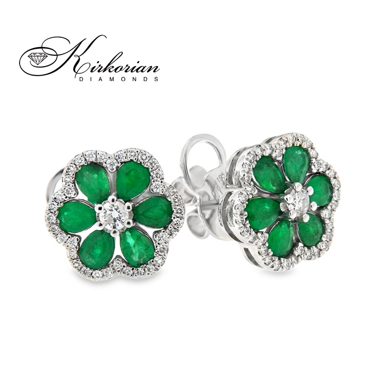 Елегантни обеци от бяло злато 18К, изработени в прецизен флорален дизайн със смарагди 1.46 ct и диаманти 0.41 ct. Моделът комбинира наситения зелен цвят на смарагда с ярък диамантен блясък, което създава луксозно излъчване и силен визуален ефект. Подходящ избор при търсене на висок клас бижу с изгодна цена и отлично съотношение качество и стойност. Всички изделия се предлагат в луксозна подаръчна кутия със сертификат