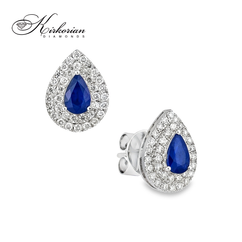 Луксозни обеци бяло злато 18к с капковидни сапфири 1.06 ct и диаманти 0.53 ct – Код IT10
