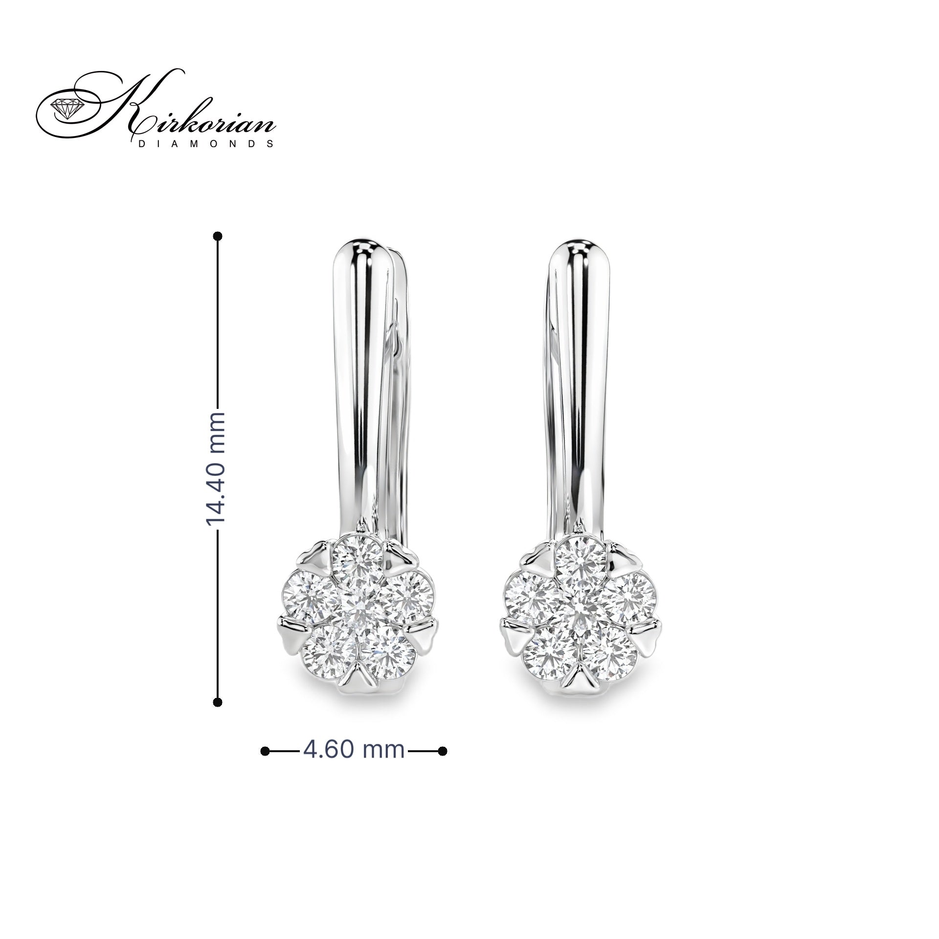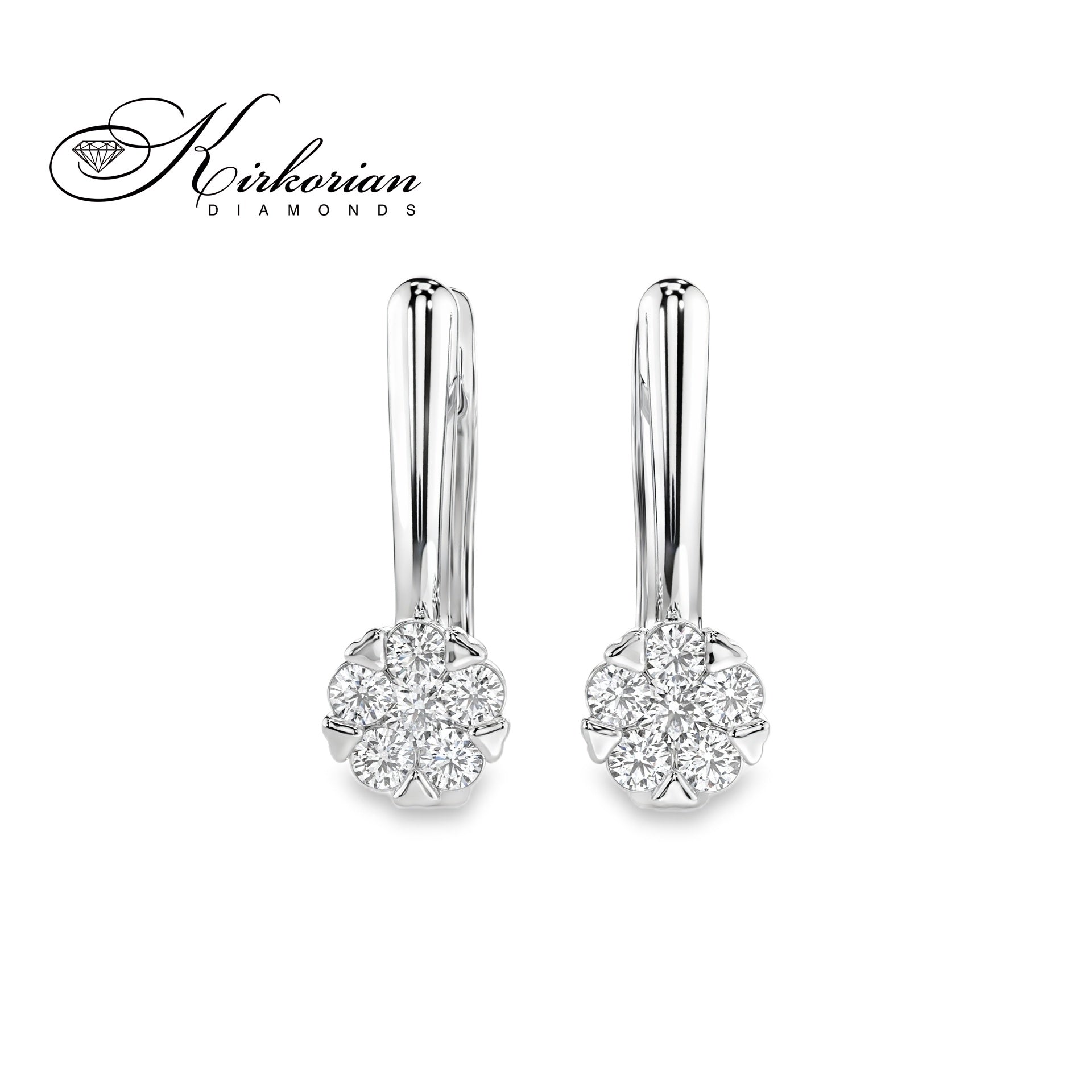 Елегантни обеци от бяло злато 14К с общо 0.26 ct естествени диаманти, подредени в прецизно цветно кластерно сияние за силен и равномерен блясък. Моделът е със сигурно английско закопчаване и изчистена линия, подходящ за ежедневно носене и изискан подарък. Всеки чифт се доставя в луксозна подаръчна кутия и включва сертификат за автентичност