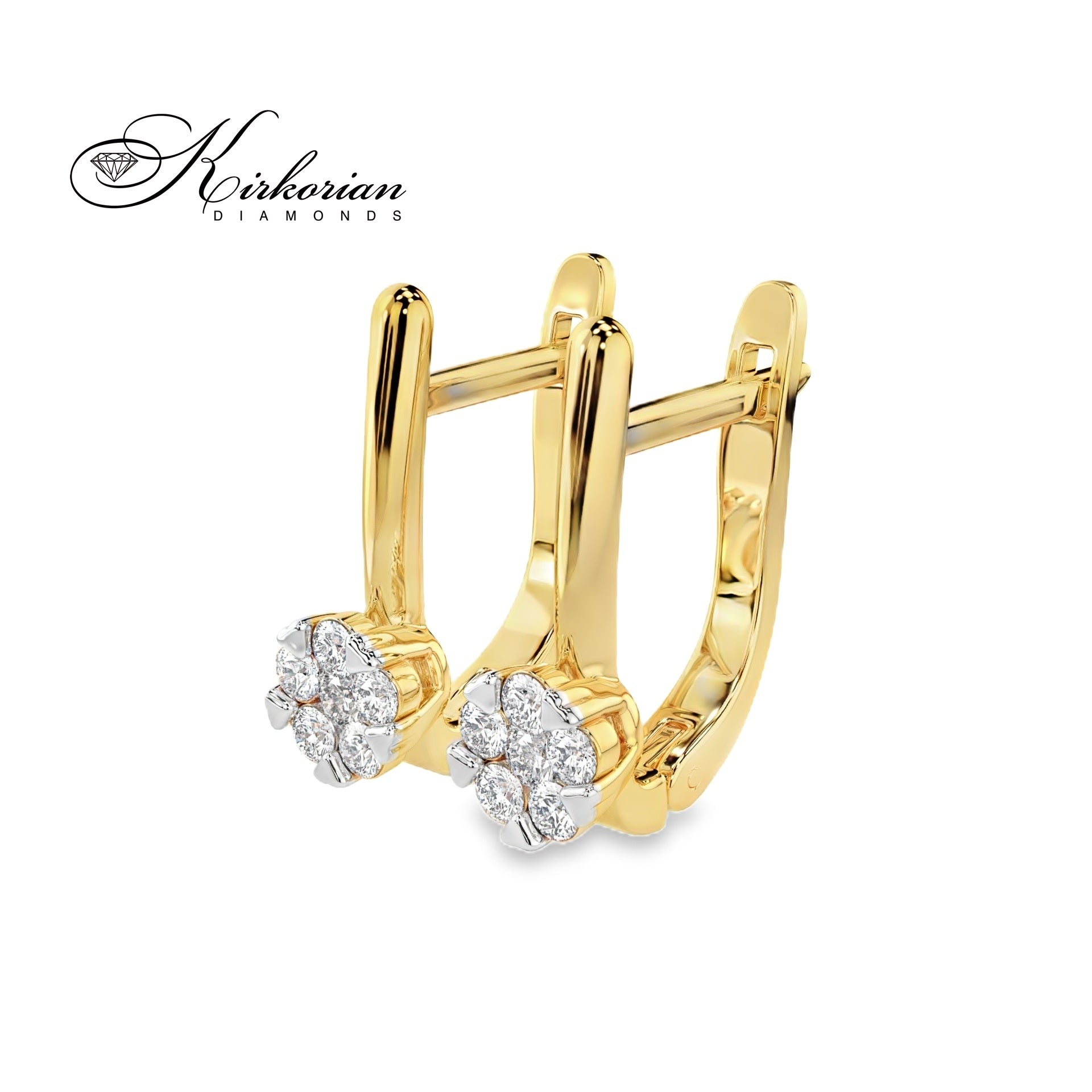 Елегантни обеци от жълто злато 14К с общо 0.26 ct естествени диаманти, подредени в прецизен цветен клъстер за силен и равномерен блясък