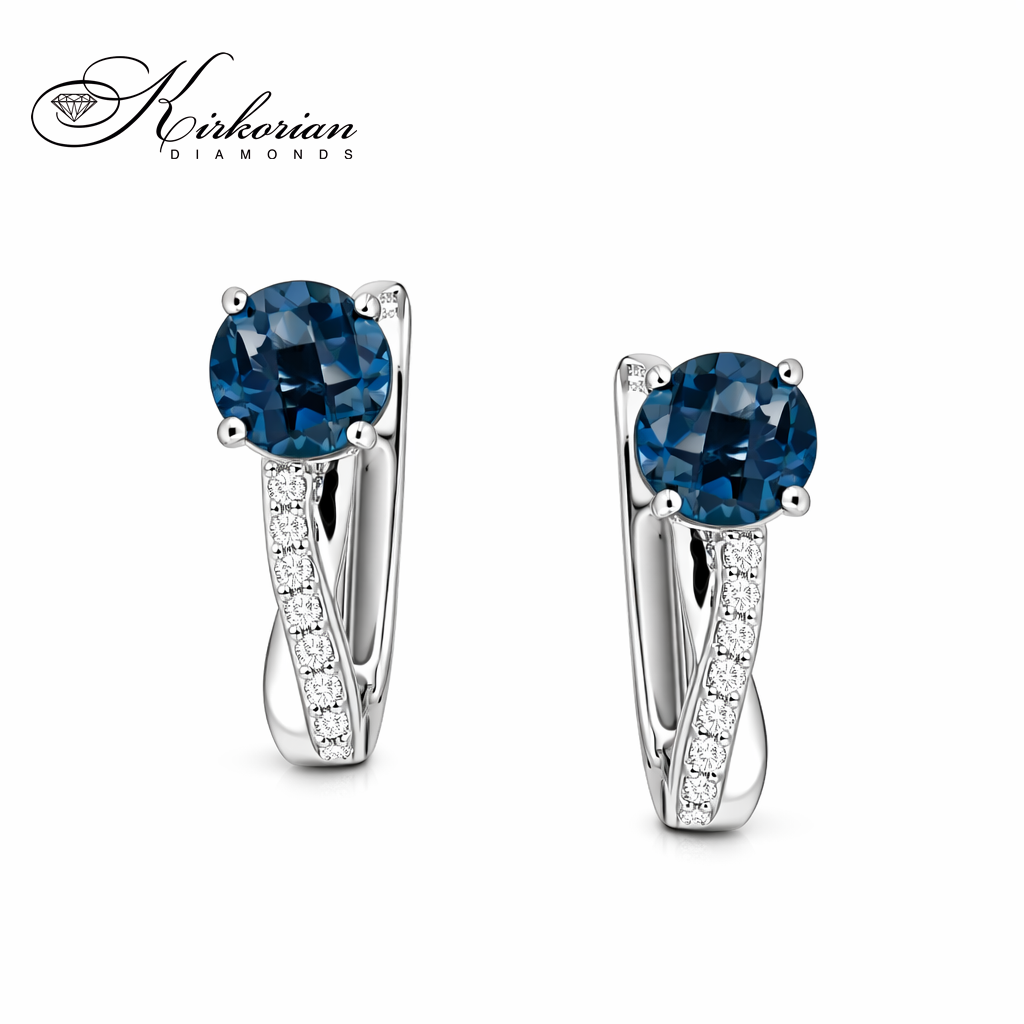 Елегантни обеци от бяло злато 18К с Лондон блу топаз 1.32 ct и диаманти 0.06 ct. Моделът впечатлява с наситения син цвят на топаза и фина диамантена линия по корпуса, която придава допълнителен блясък. Изчистената и модерна форма подчертава камъните, а изработката е висок клас, подходяща за ежедневна елегантност и специални поводи. Изделието се доставя в луксозна подаръчна кутия, напълно готово за подарък.