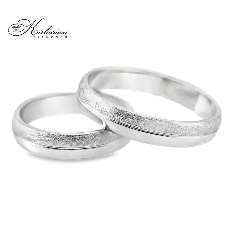 Класически брачни халки от бяло злато 14 карата, с изискано съчетание между гланцова и матова (сатинирана) повърхност. Този елегантен дизайн придава мек и модерен вид на халките, които съчетават изчистена визия с характерен завършек.