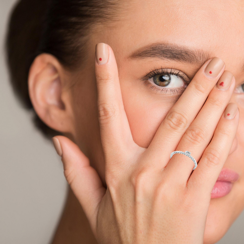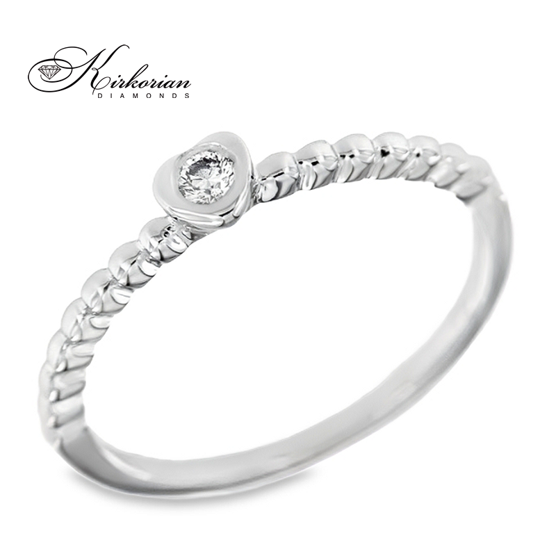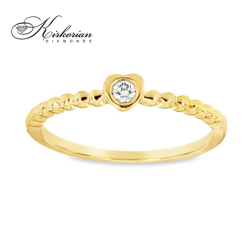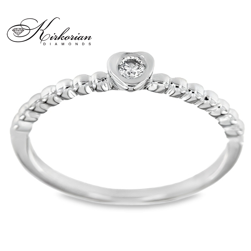 Изящен годежен пръстен от бяло или жълто злато 14К, декориран с естествен диамант 0.06 ct, внимателно шлифован в класическа брилянтна форма. Моделът впечатлява с деликатна обковка във формата на сърце и фина полирана повърхност, създаваща усещане за изискан лукс и стил. Подходящ е както за романтично предложение, така и като подарък, готов за поднасяне – с включена луксозна кутия и сертификат за автентичност