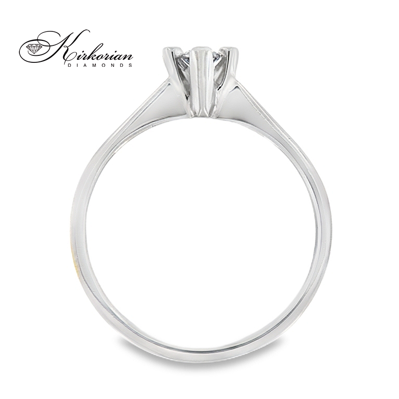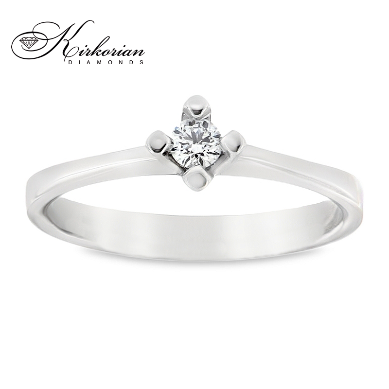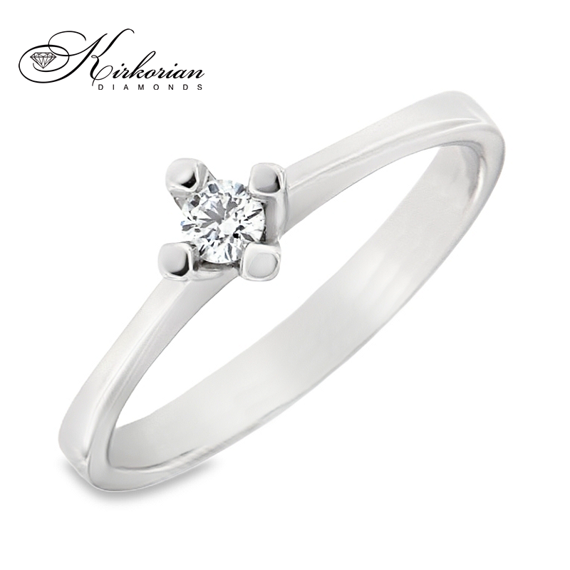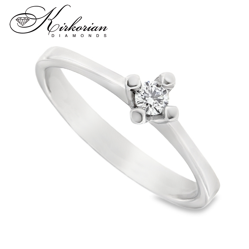 Класически годежен пръстен, изработен от бяло злато 14 карата с внимателно подбран естествен диамант 0.11 ct, поставен в четирикрака корона за максимален блясък и стабилност. Изчистеният и елегантен дизайн подчертава формата и цвета на диаманта – с висок клас F/VS2 и брилянтна шлифовка. Изключително подходящ избор за класическо и стилно предложение за брак. Предлага се с луксозна подаръчна кутия и сертификат за автентичност