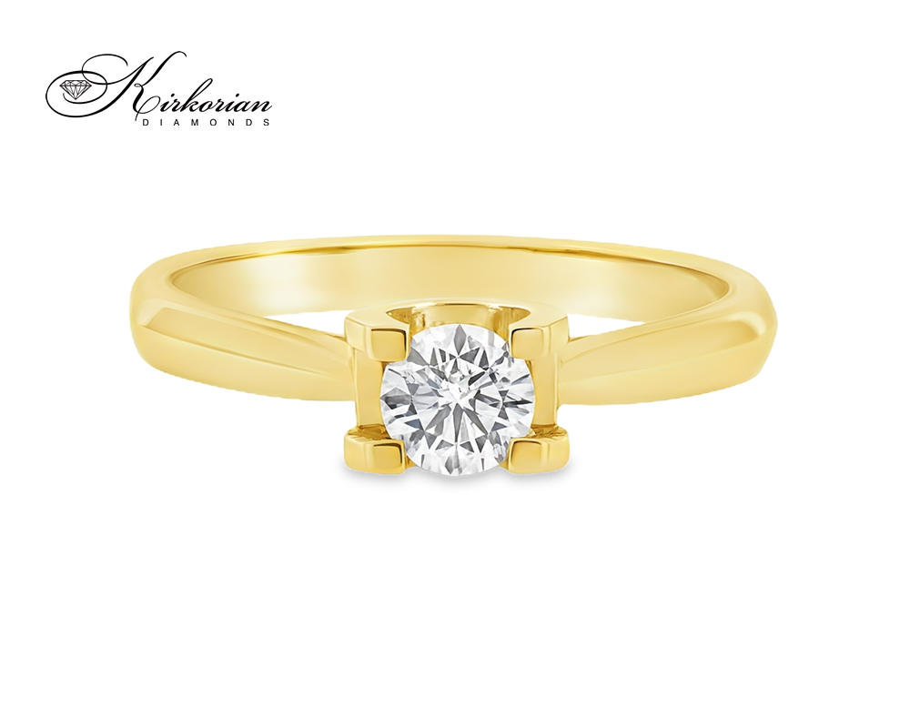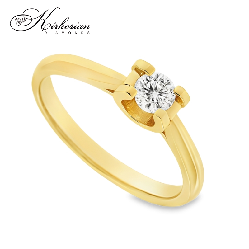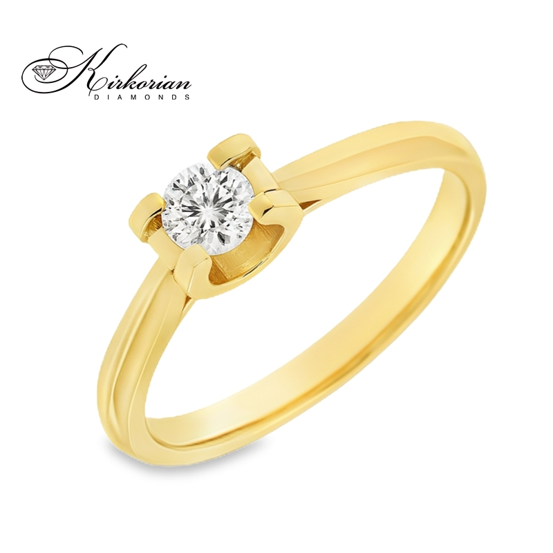 Класически годежен пръстен, изработен от бяло или жълто злато 14 карата с централен естествен диамант с тегло 0.25 ct. Изчистен и стилен дизайн, подходящ за всяко предложение, съчетаващ лукс и изисканост. Диамантът е с кръгла форма, цвят G-H, яснота SI и брилянтна шлифовка за максимален блясък.