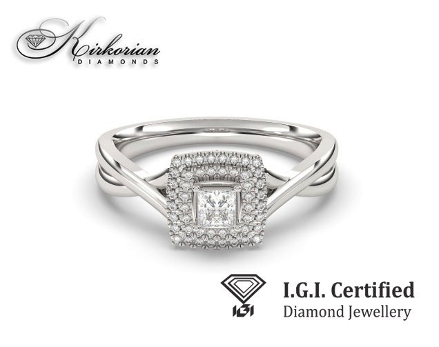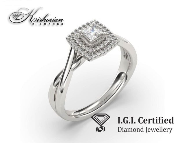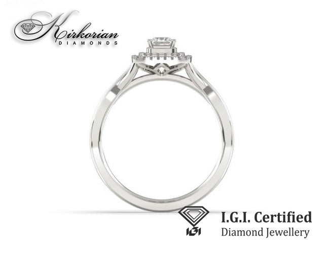 Общото тегло на диамантите е 0.34 карата, с цвят G–H и чистота SI. Всички камъни са с брилянтна шлифовка и са сертифицирани от IGI. Размерът на пръстена е 53, с възможност за корекция. Всеки артикул се предлага с луксозна кутия и официален сертификат за автентичност.