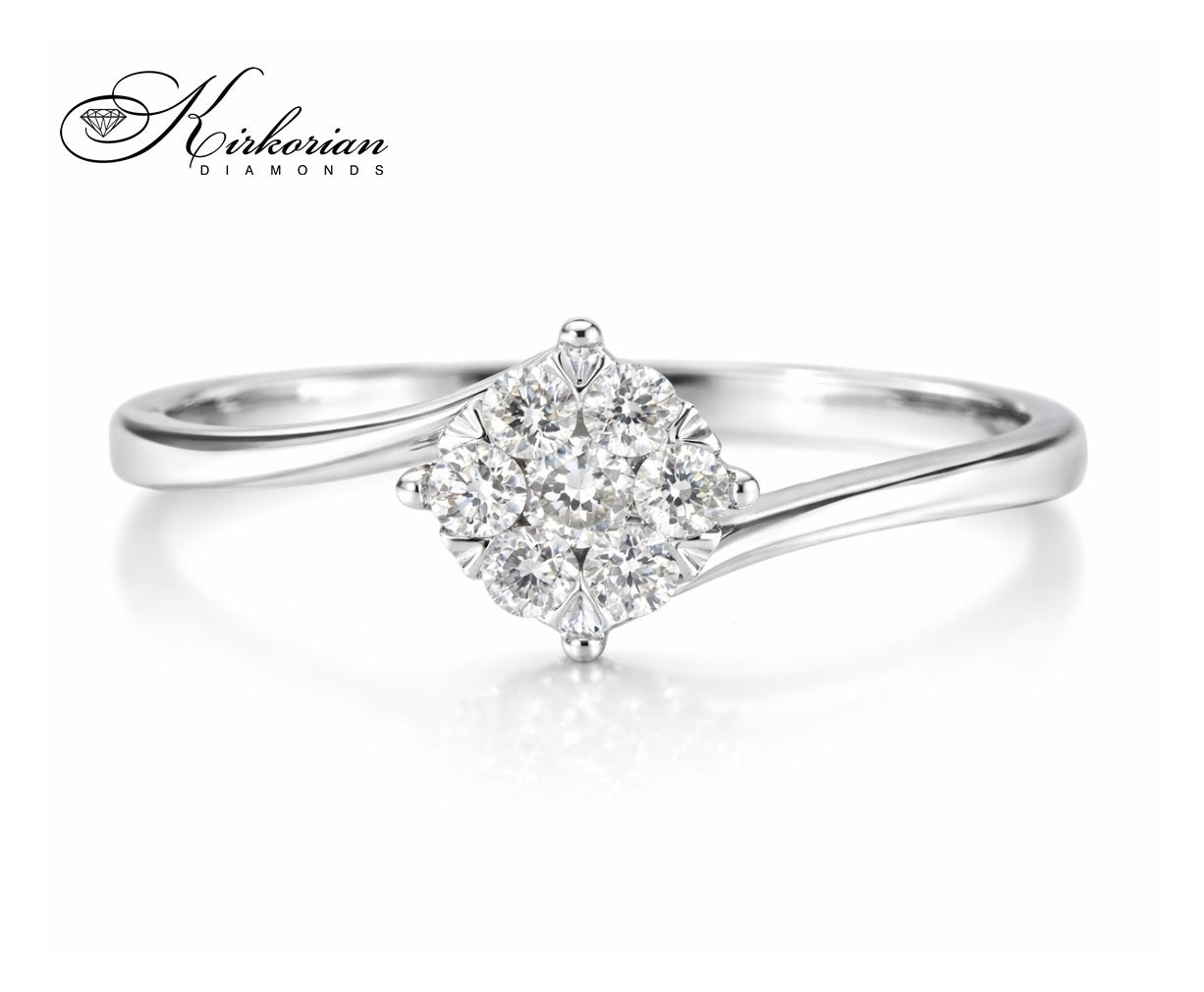 Изискан годежен пръстен от 18 карата бяло злато с естествени диаманти с общо тегло 0.12 карата. Моделът впечатлява с елегантен завършек и фина форма с кръгла шлифовка. Подходящ за дами, които търсят баланс между стил и високо качество. Пръстенът се предлага с луксозна кутия и сертификат за автентичност. Идеален подарък за специален момент. Изработен с прецизност и внимание към детайла. Размерът се коригира при заявка. Виж още годежни пръстени с диаманти: https://kirkorian-diamonds.com/godejni-prasteni