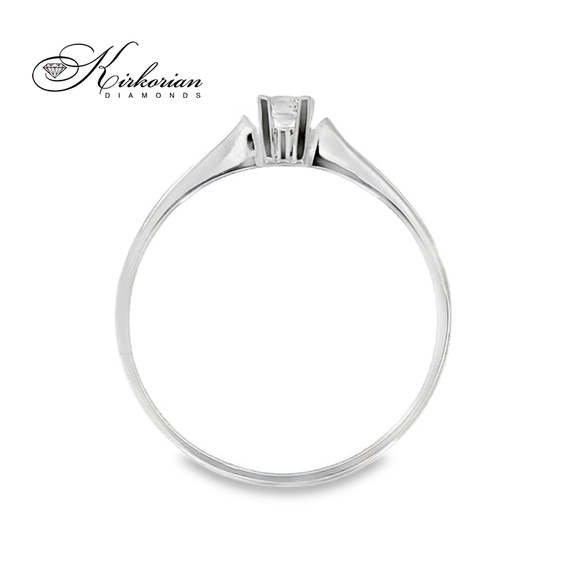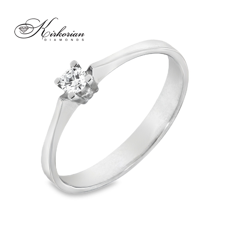 Елегантен годежен пръстен от бяло злато 14К с естествен диамант 0.10 ct, цвят E/F и чистота VS1. Класически дизайн с кръгла форма и брилянтна шлифовка, подчертаваща изключителния блясък на камъка. Перфектен избор за романтично предложение, отличаващ се с финес и вечна стойност.