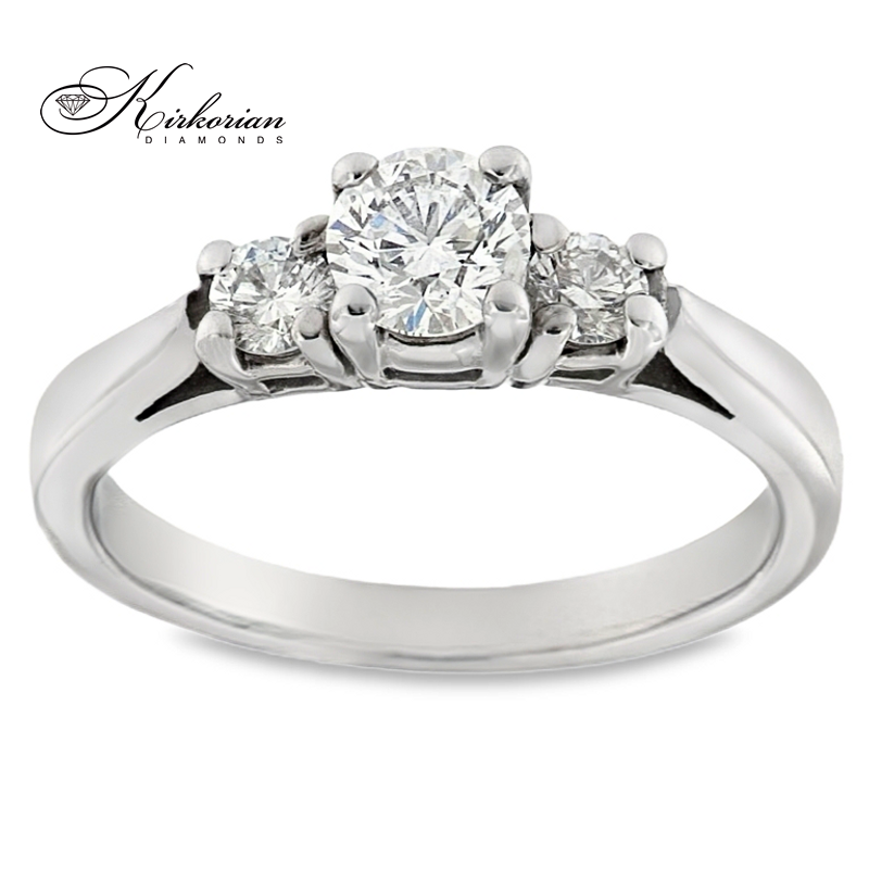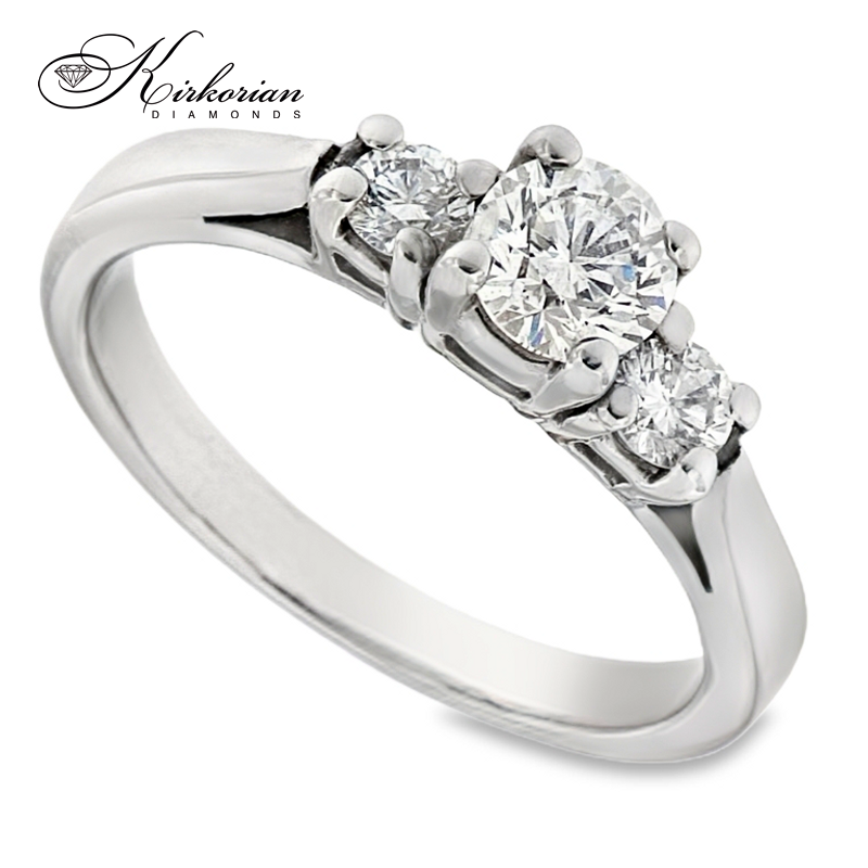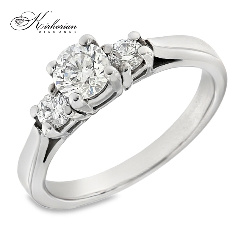 Подарете символ на миналото, настоящето и бъдещето с този елегантен годежен пръстен от бяло злато 14k, инкрустиран с три естествени диаманта общо 0.60 карата. Централният диамант е подчертана от два странични камъка, създавайки класическа композиция с изключително въздействие.