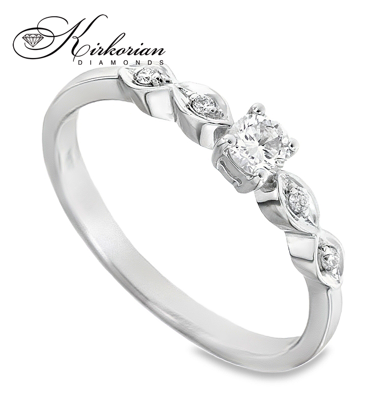 Годежен пръстен с елегантна визия, изработен от 18 карата бяло злато и инкрустиран с естествени диаманти с общо тегло 0.20 ct. Централният диамант е с кръгла форма и брилянтна шлифовка, цвят G-H и чистота SI – идеално допълнен от изящни странични акценти. Всеки пръстен се доставя с луксозна кутия и KD сертификат за автентичност. Цени от производител, без компромис в изработката и блясъка.