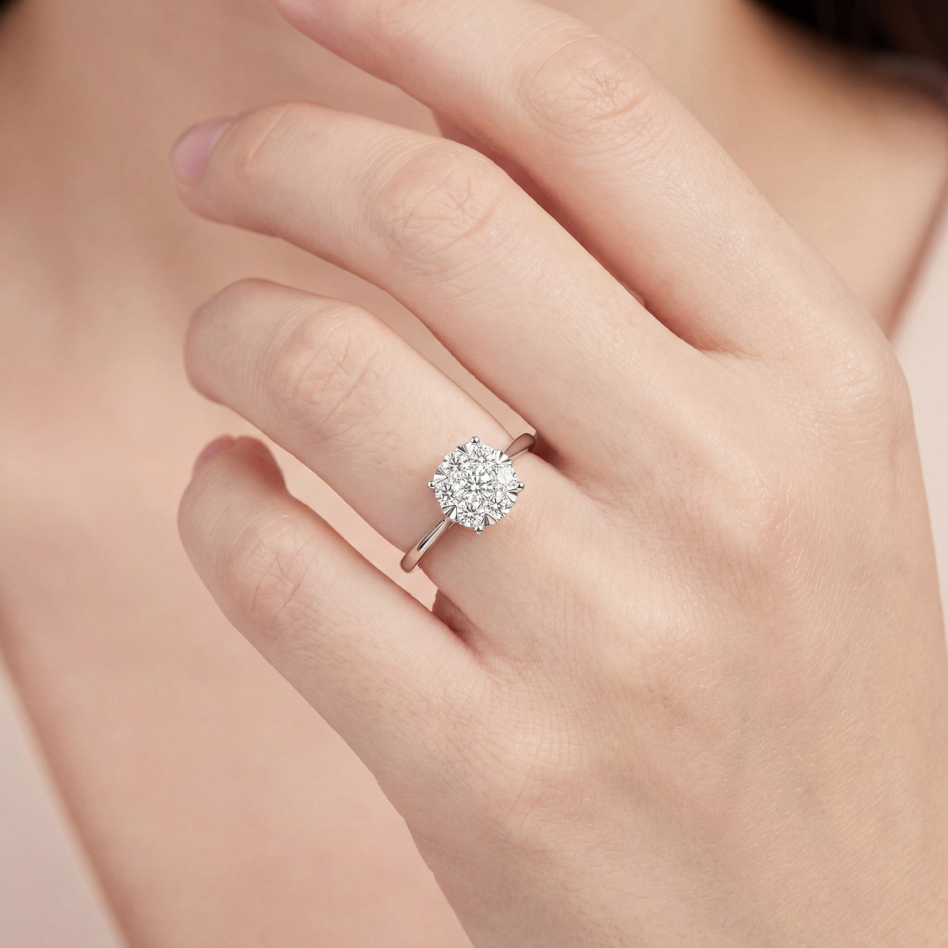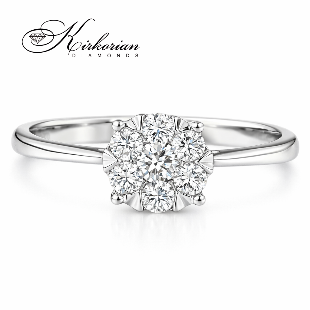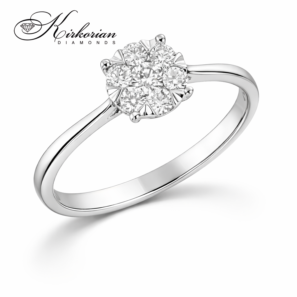 Луксозен годежен пръстен от бяло злато 18 карата с общо 0.25 карата естествени диаманти с брилянтна шлифовка и отлични визуални качества – цвят G-H и чистота SI Пръстенът е с код RN64B и е перфектен избор за стилно предложение за брак или подарък за специален повод Включва KD сертификат за автентичност и се доставя в елегантна луксозна кутия с възможност за корекция на размера
