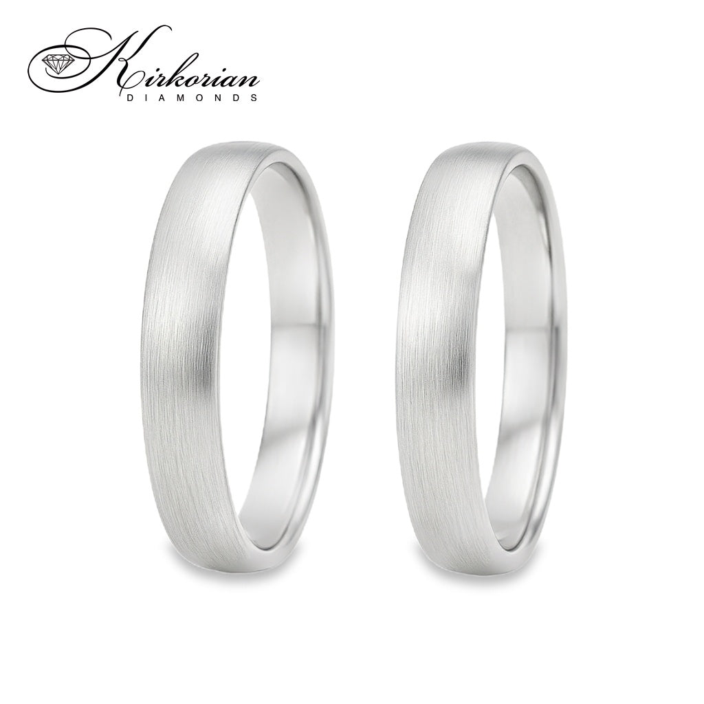Класически венчални халки с изчистен и стилен дизайн, изработени от бяло злато 14 карата (585). Повърхността е с елегантен матов финиш, който придава мек и съвременен облик. Моделът е с ширина 4 мм – универсален избор за ежедневен комфорт и естетика.