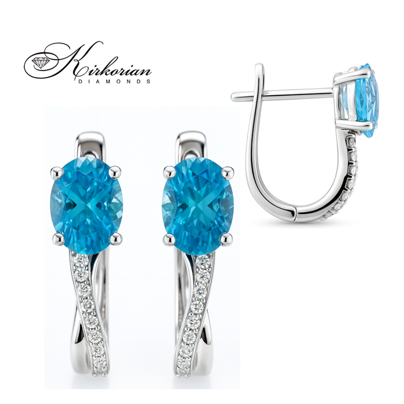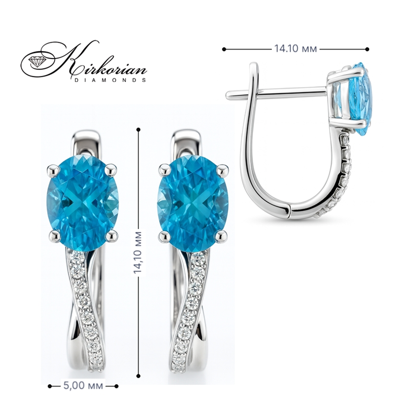 Обеци от бяло злато 14К с топаз 1.76 ct и диаманти 0.07 ct – елегантен дизайн и изящество | Код RN164