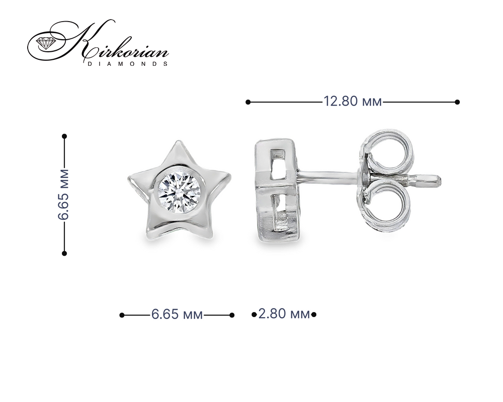 Изящни обеци звезда от бяло злато 18 карата (750), инкрустирани с естествени диаманти 0.12 ct с брилянтна шлифовка. Моделът съчетава модерен дизайн и класическа елегантност, подходящ за ежедневна визия или специален повод.