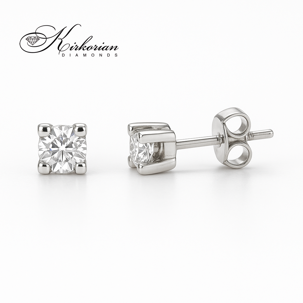 Класически обеци от бяло злато 14К с диаманти 0.30 ct на щифт – ТОП ЦЕНА и луксозна опаковка