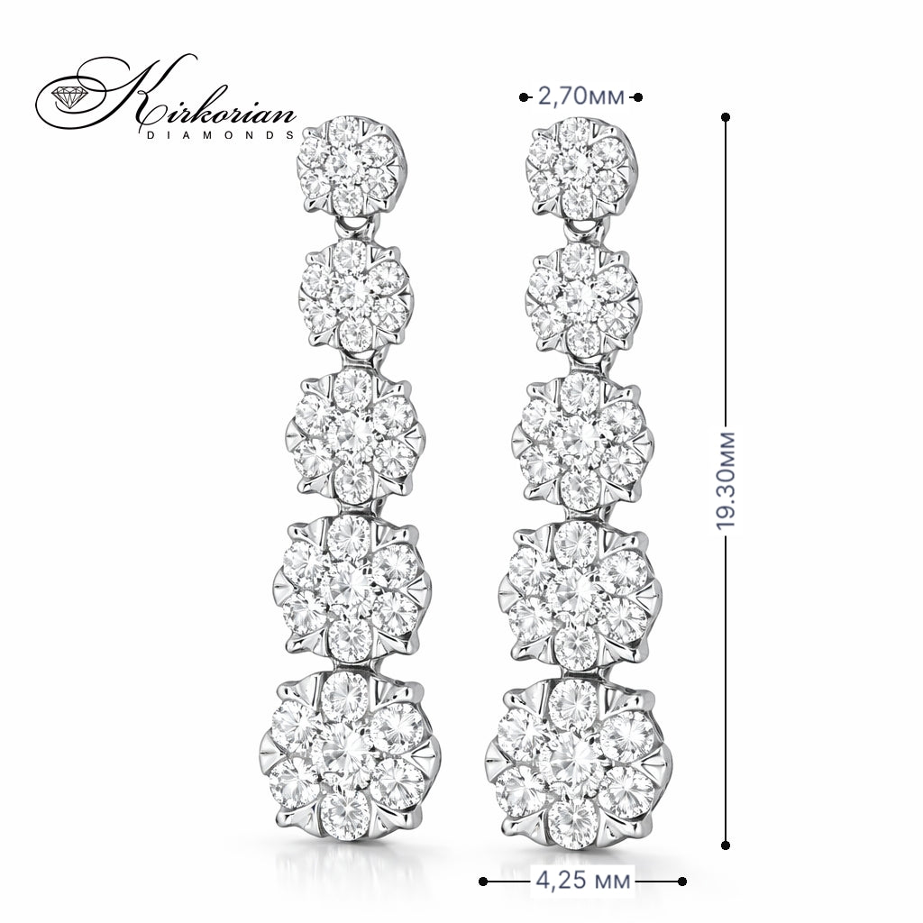 Висящи обеци от бяло злато 14К с диаманти 0.50 ct, изработени в елегантен дизайн с последователно подредени диамантени елементи. Моделът създава силен блясък и подчертава линията на лицето, подходящ както за специални поводи, така и за клиенти, които предпочитат изразителни бижута. Изработени от висококачествено бяло злато и доставяни в луксозна подаръчна кутия, готови за подарък.